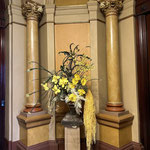 All the lovely guests were welcomed with a fruit tree of birds nests in the Vestibule followed by a reveal of all shades of yellow in Centennial Hall.